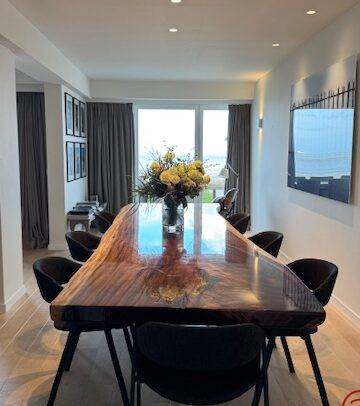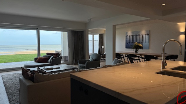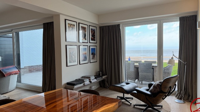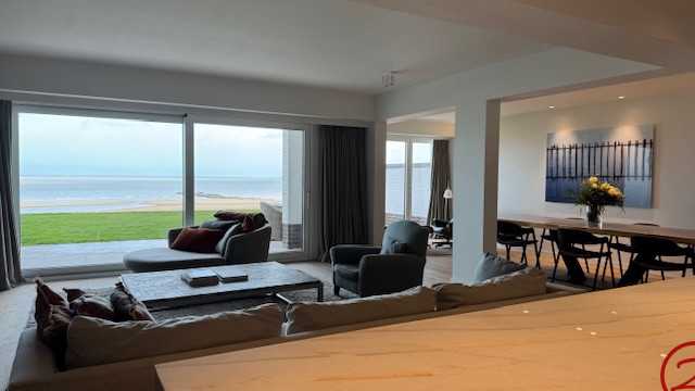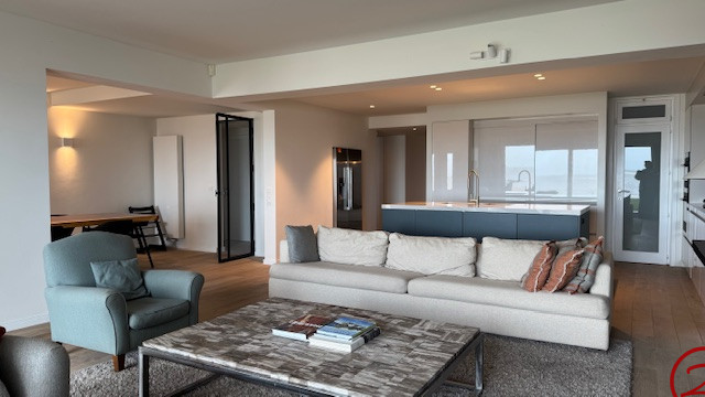 Spacieux duplex de luxe – 4 chambres – situé sur la digue piétonne, offrant une vue mer panoramique depuis tous les espaces de vie ainsi qu’un jardin orienté plein sud.