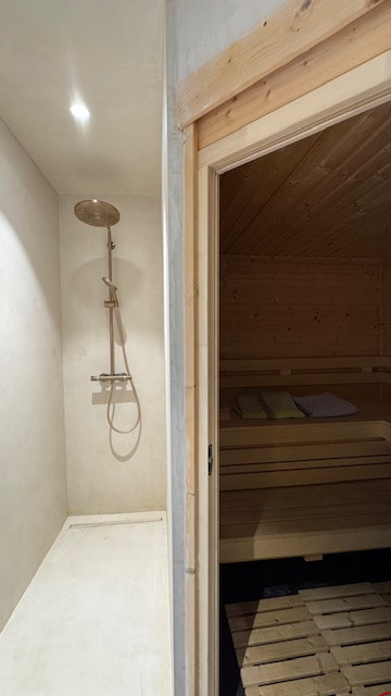 La suite parentale se compose d’une chambre double avec terrasse sud, d’une salle de bain, d’un dressing, d’une toilette séparée et d’un espace bien-être avec sauna et douche.